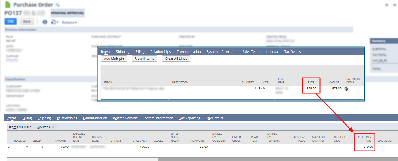 4. The selling rate on the Purchase Order should reflect the unit item’s selling rate from the Sales Order.